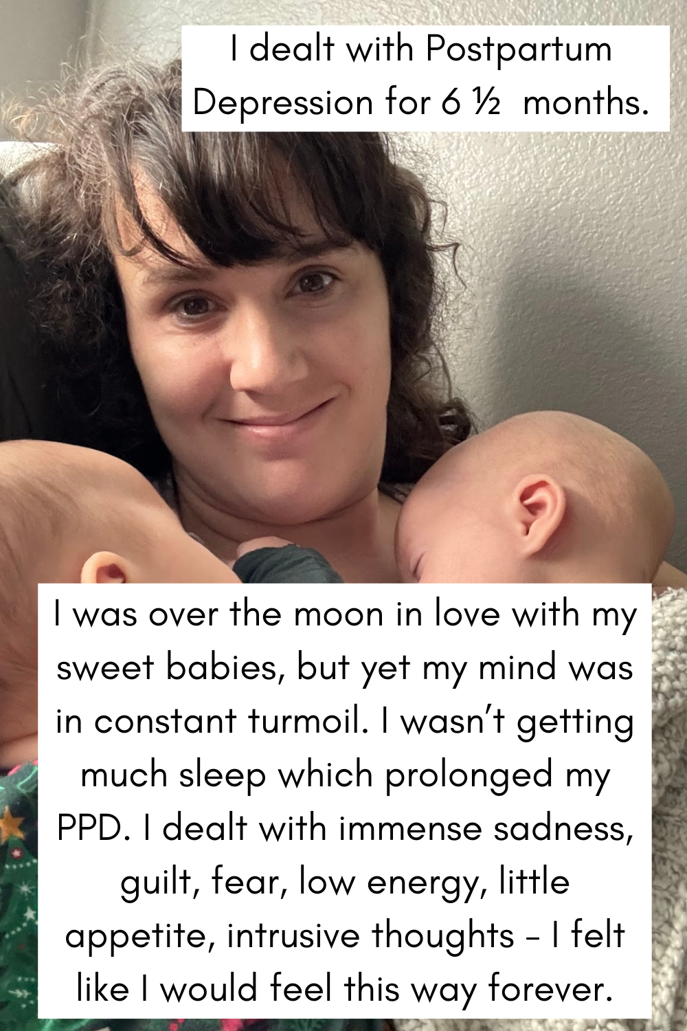For six and a half months, I dealt with immense sadness, guilt, fear, low energy, little appetite, and intrusive thoughts. I experienced dramatic weight loss due to stress, breastfeeding two babies, and a lack of appetite. It made me sad when I received “compliments” about my weight, because I knew the weight loss wasn’t coming from a healthy place.